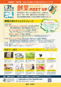 なお、この間、岡崎商工会議所様からも助言や広報協力等いただいております。発案から企画、グループまとめ、後援取りつけ等の準備~開催まで、なんとわずか2ヶ月弱!RISE有志はじめ関係者の皆様のフットワークの軽さとご助力の賜物です。関係者に皆様、ありがとうございました!