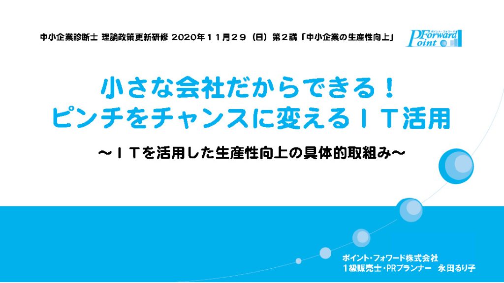 - SNS活用、IT活用、AI活用、VR活用セミナー