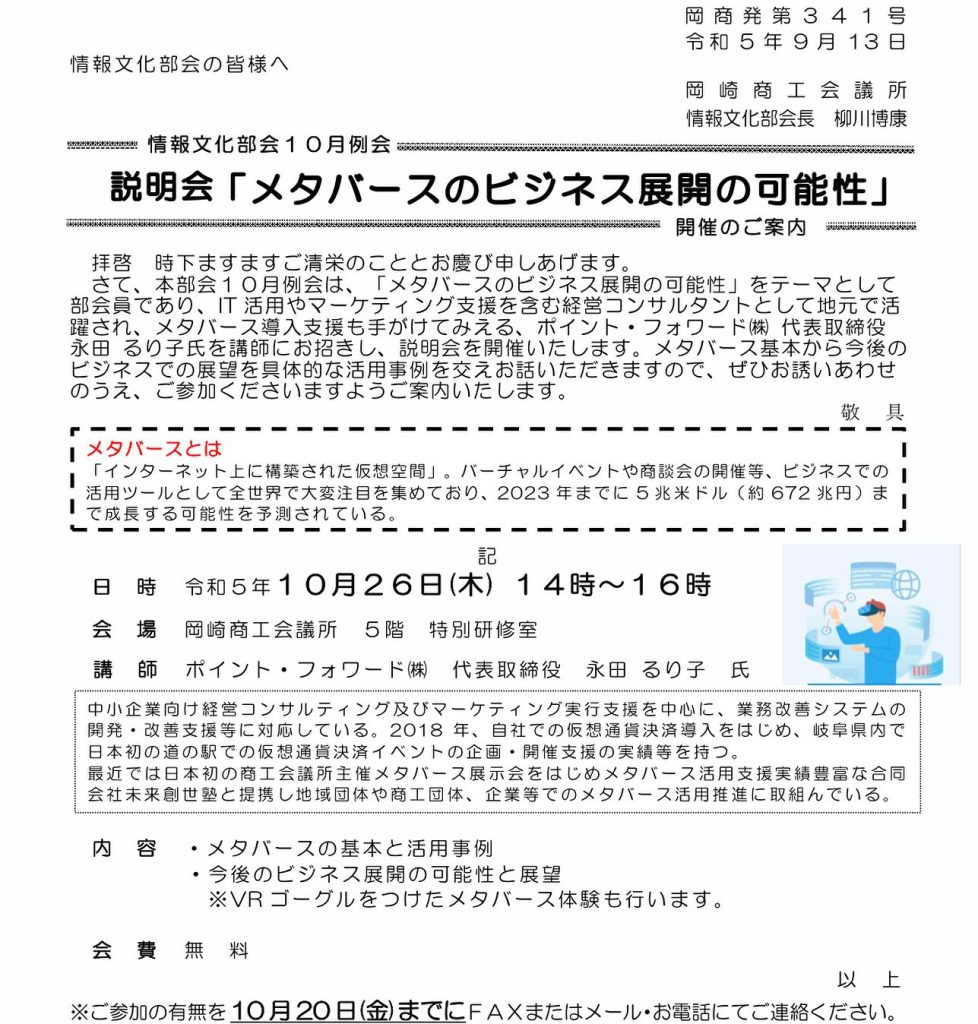 ・岡崎商工会議所 情報部会様にて「メタバース活用セミナー」実施(2023年10月)